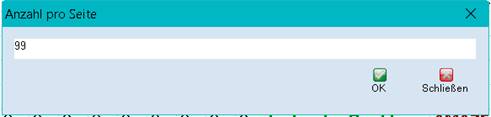 > die Anzahl der Datensätze von den voreingestellten 25 auf max. 99 erhöhen > mit „OK“ bestätigen > diese Einstellung ist nun fest gespeichert Hinweis: je mehr Datensätze pro Seite angezeigt werden sollen, desto länger dauert es, bis sich die Liste aufbaut |