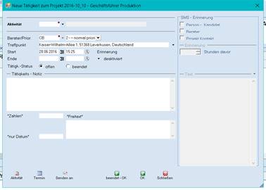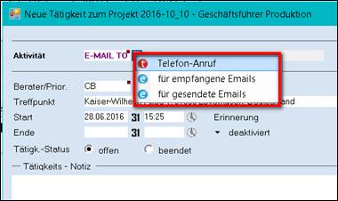 > schnellere Eingabe durch voreingestellte Aktivität / Tätigkeit > > es öffnen sich nur die Tätigkeiten, die vom Administrator in „Interne Einstellungen“ voreingestellten Aktivitätstypen für.. >... -