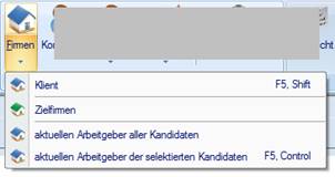 Der Button ist unterteilt, auch in der Farbschattierung erkennbar: > den oberen Teil direkt anklicken > zur Maske Firma des Klienten wechseln (das ist auch der erste Eintrag der Auswahlliste) oder > > es öffnet sich eine Auswahlliste