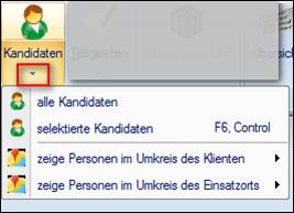 Der Button ist unterteilt, auch in der Farbschattierung erkennbar: > den oberen Teil direkt anklicken > es öffnet sich eine Liste aller Personen der Kanddiatenliste (= erster Eintrag der Auswahlliste) oder > > es öffnet sich eine Auswahlliste
