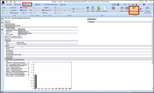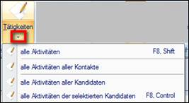 Tätigkeiten (von Kontakten, von Kandidaten) zu diesem Projekt (= erster Eintrag der Auswahlliste), |