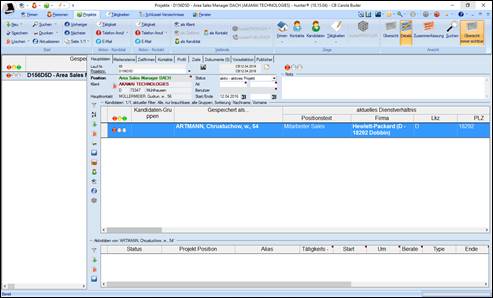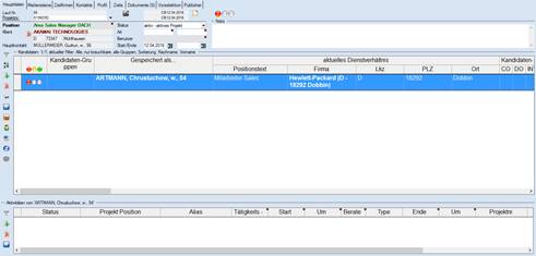 Im Hintergrund muss die entsprechende Personenmaske geöffnet sein > > die ausgewählte Person wird als Kandidat in die Tabelle Kandidatenübersicht im Projekt übernommen Hinweis: Ist noch keine Personenmaske
