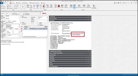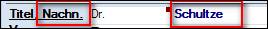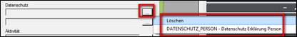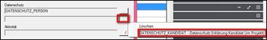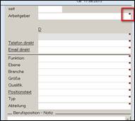 beliebiges Beispiel Datenfelder in den Eingabemasken und Suchmasken, die mit einem kleinen roten Quadrat in der rechten oberen Ecke gekennzeichnet sind, > öffnet das Kontextmenü des jeweiligen Feldes (z.B. Schlüsselauswahltabelle. vergrößertes Notizfeld) |