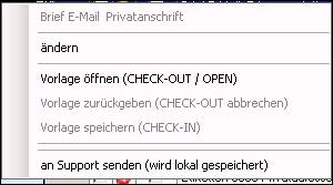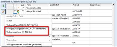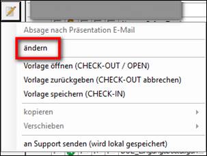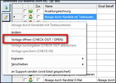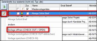 > Dokumentenvorlage markieren > Bearbeiten > Vorlage öffnen (CHECK-OUT / OPEN) anklicken