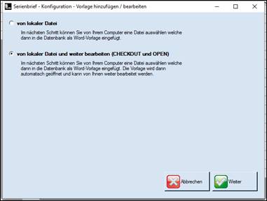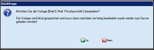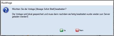 > die Serienbriefvorlage muss vor dem Bearbeiten zunächst lokal zwischengespeichert werden > mit Ja mit Nein Vorgang abbrechen