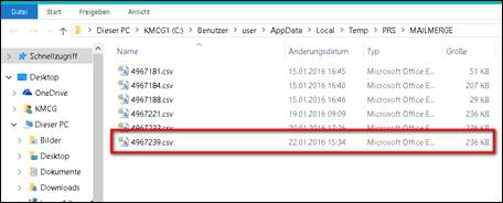 Serienbrief in das Verzeichnis einfügen