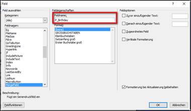 erweiterte Serienbrieffelder verwenden |
