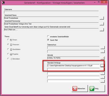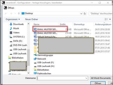 Die gespeicherte Serienbriefvorlage im Verzeichnis konfigurieren