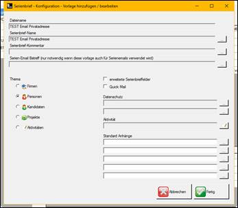 Serienbrief – Konfiguration – Vorlage hinzufügen/ bearbeiten