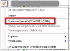 > Vorlage öffnen (CHECK OUT / OPEN) anklicken