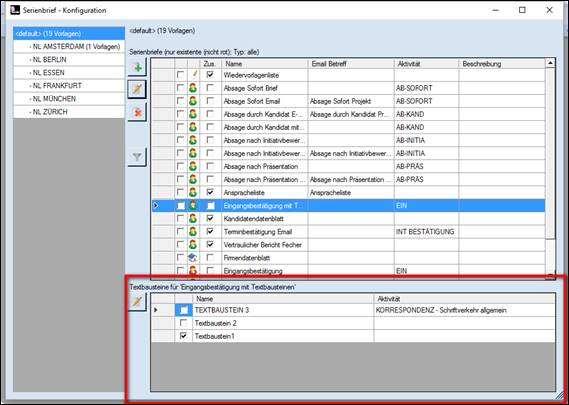 Serienbrief Konfiguration - Textbausteine