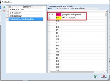 > Textbaustein durch anhaken markieren