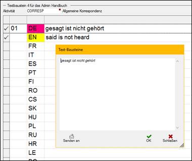> den Textbaustein bei Bedarf auch in einer anderen Sprache erstellen.