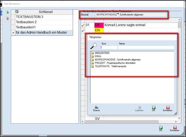 Textbaustein dem Dokument zuordnen