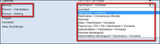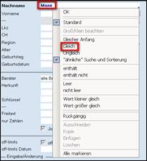 Kontextmenü des jeweiligen Feldes (z.B. Schlüsselauswahltabelle. vergrößertes