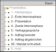 auf allen Übersichtstabellen: Projekt – Hauptdaten, Suchergebnisse |