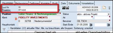 > verfügbar - Firmenmaske – TAB Mitarbeiter - Projektmaske – Hauptdaten mit Doppelklick zu öffnen Hinweis: entfernt man den Haken, so öffnet