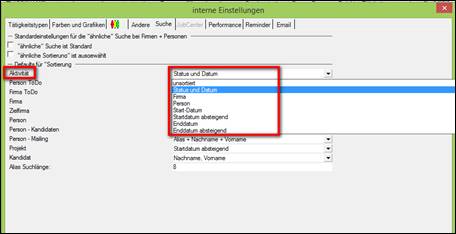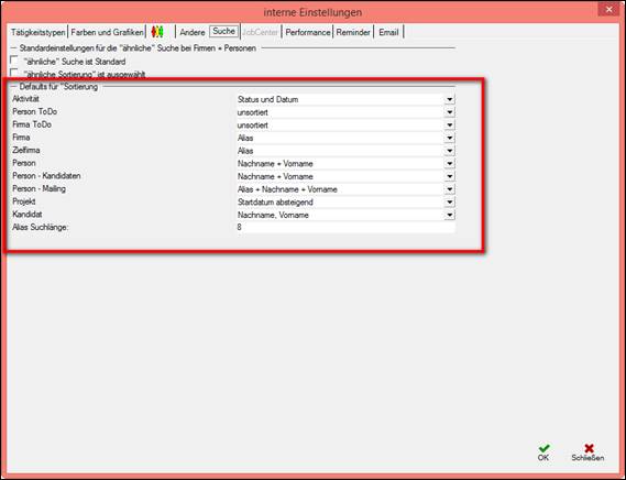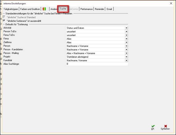 Standardeinstellungen für die „ähnliche“ Suche bei