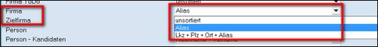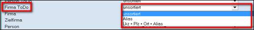 optionale Einstellung bei Verwendung des Organigramms - aus - innerhalb der Firma - über alle |
