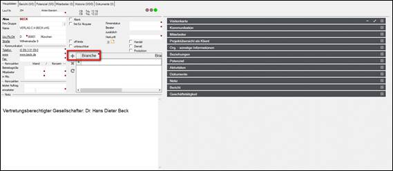 > weitere Ansprechpartner können auf diese Weise zugeordnet werden, sind auf der Registerkarte „Kontakte“ sichtbar