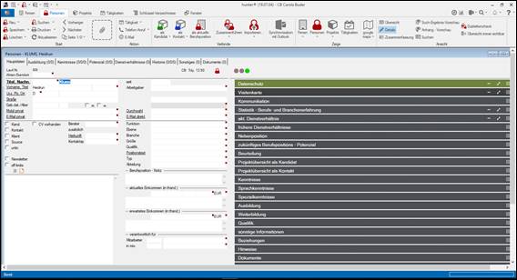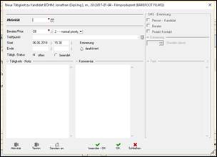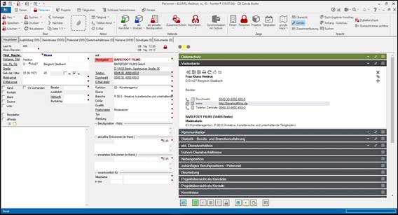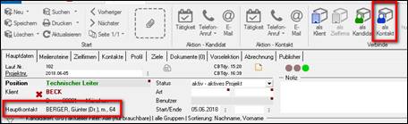 Verknüpfung mit einer Person der Klienten-Firma = Ansprechpartner > im Hintergrund ist die Personenmaske geöffnet >