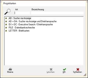 > Projektart durch anklicken auswählen > mit Doppelklick oder „OK“ bestätigen |