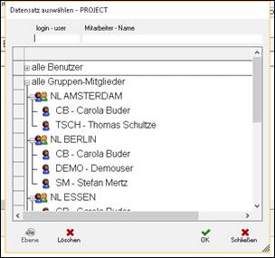 es öffnet sich die Schlüsseltabelle der Berater / User