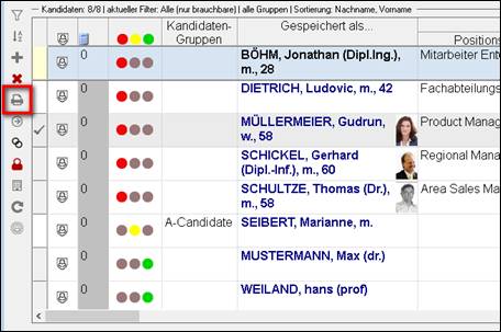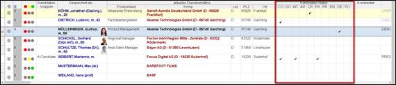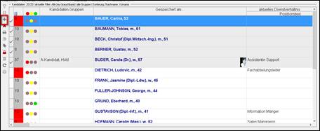 > die Kandidaten in der Kandidatenübersicht filtern / selektieren/ in Gruppen einteilen |