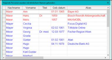 > öffnet sich eine Liste: folgende Personen mit ähnlichem Namen wurden gefunden