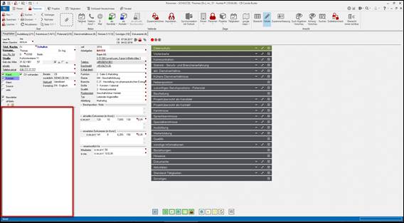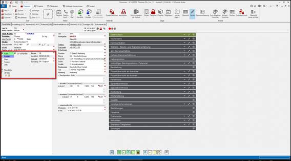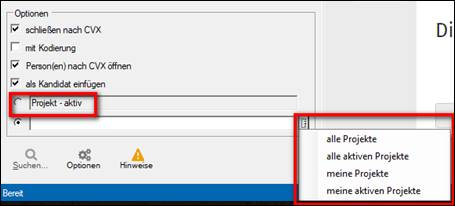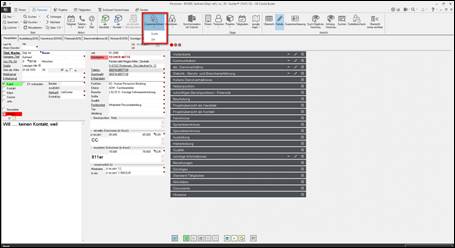 Hinweis: ist kein Projekt / Firma im Hintergrund geöffnet, bleibt das Auswahlmenue an dieser Stelle leer