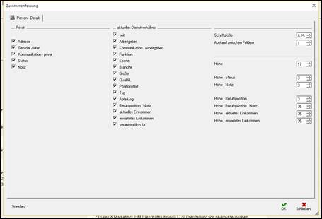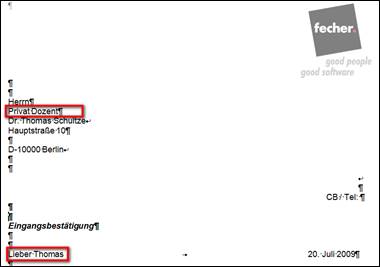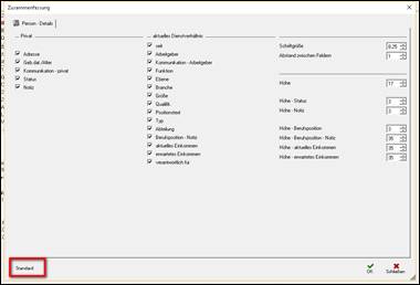 Standardfelder für das aktuelle Serienbrief