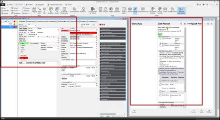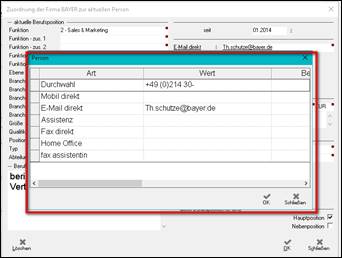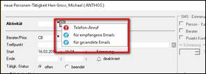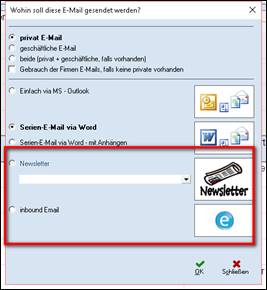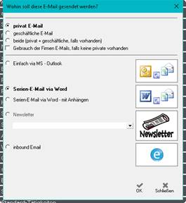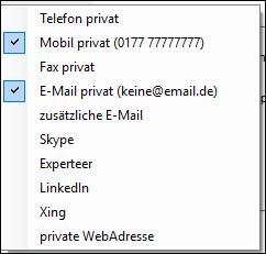> sind 2 oder mehr E-Mail Adressen auf der Personenmaske (privat und/oder geschäftlich) hinterlegt > öffnet sich eine Auswahlmöglichkeit