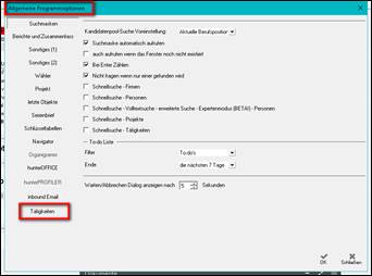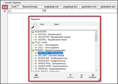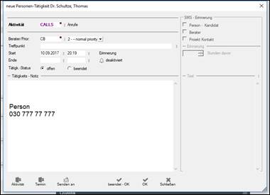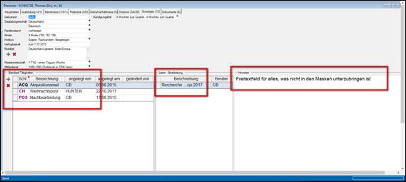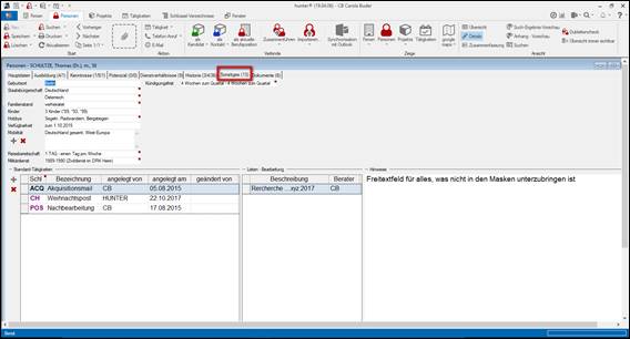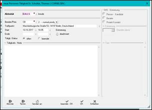 Hinweis: wurde vom hunter Administrator in „interne Einstellungen“ eine Tätigkeit voreingestellt, so öffnet sich zunächst die entsprechende Tätigkeiten / Aktivitäten Maske zum vervollständigen
