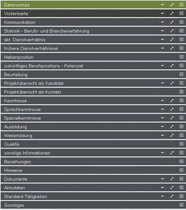 Voreinstellung: die Firmenmaske ist aktiv (der Reiter ist heller als die anderen)