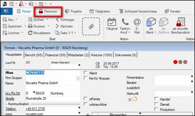 Hinweis: Shortcut Strg + N: Neue Person anlegen