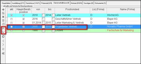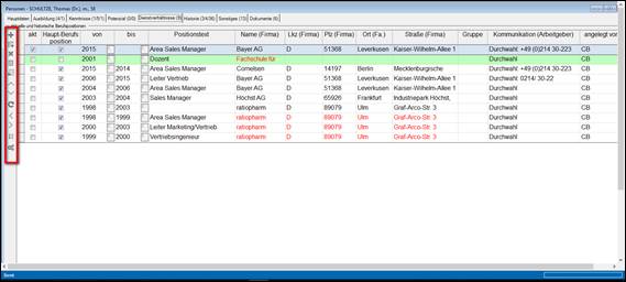Werkzeugleiste Dienstverhältnisse