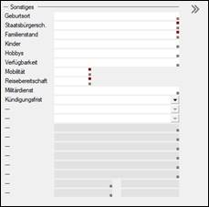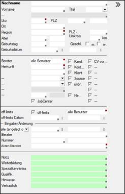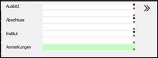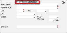 Datenfelder in den Eingabemasken und Suchmasken, die mit einem kleinen roten Quadrat in der rechten oberen Ecke gekennzeichnet sind