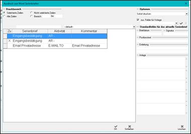 > es öffnet sich die Liste der personen-bezogenen Serienbriefe > Vorlage auswählen > es öffnet sich