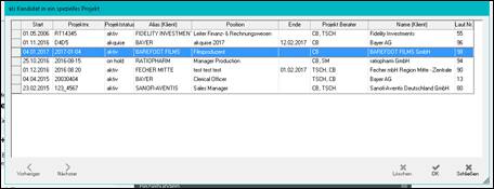 > im Projekt, das im Hintergrund geöffnet ist, einen oder mehrere Kandidaten durch markieren selektieren >