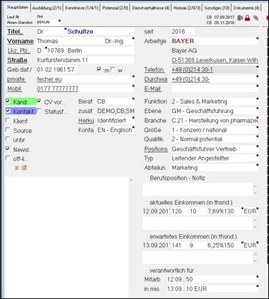 Personenmaske – TAB Hauptdaten
