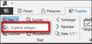 eine neue projekt-bezogene Tätigkeit anlegen, ohne auf die Projektmaske