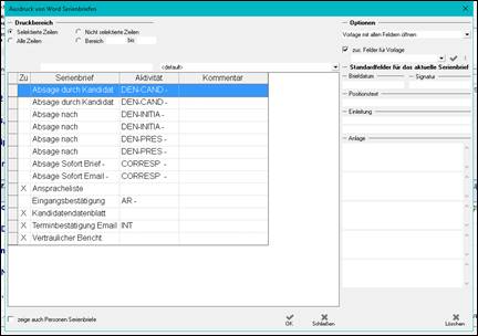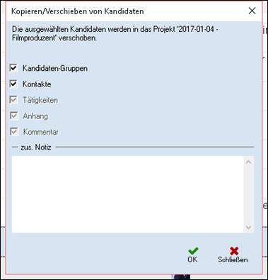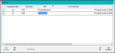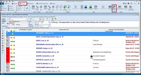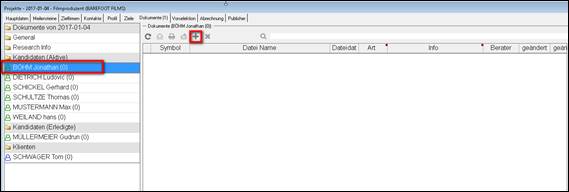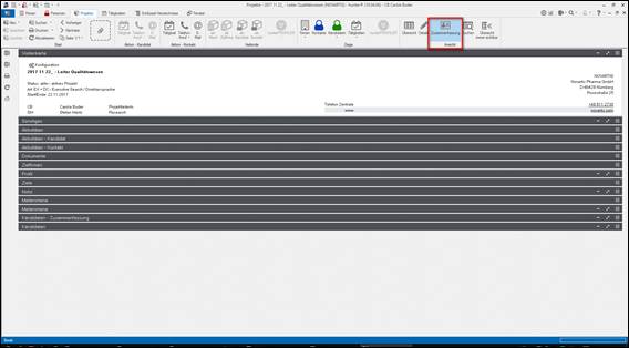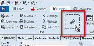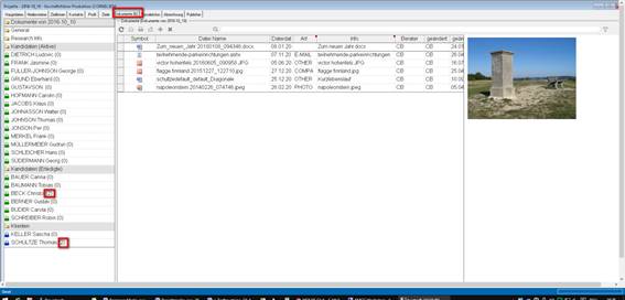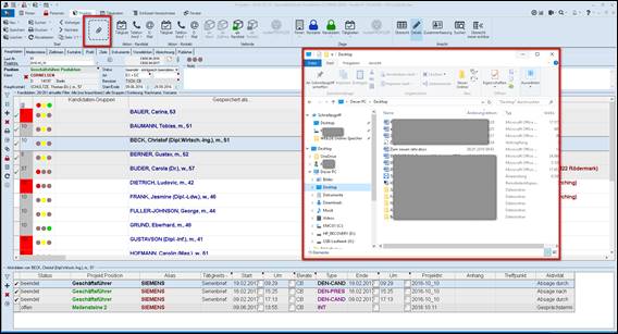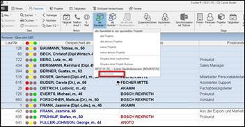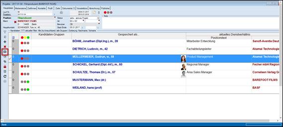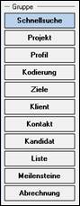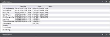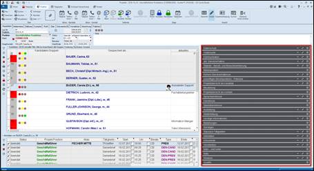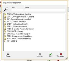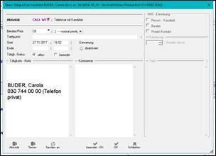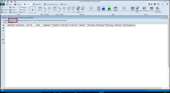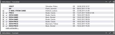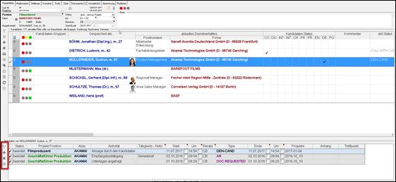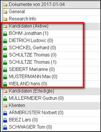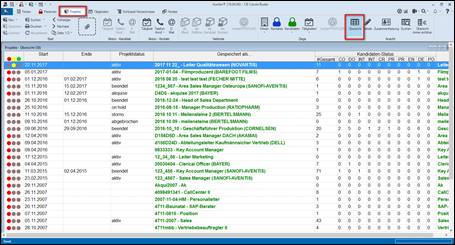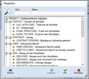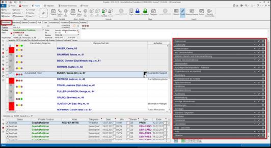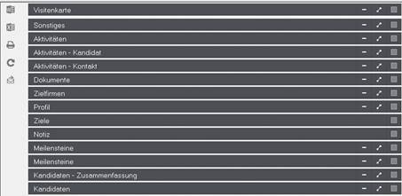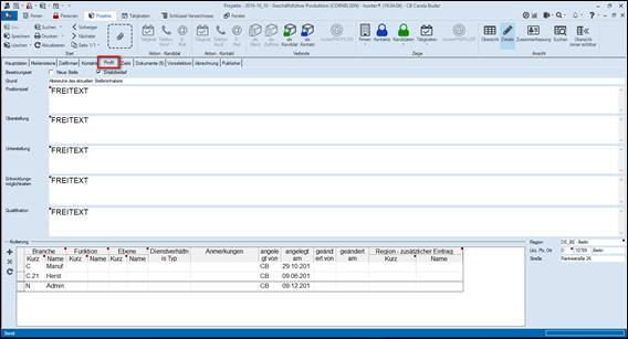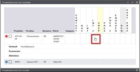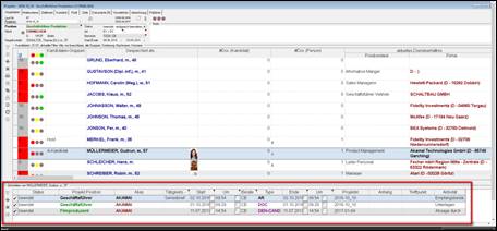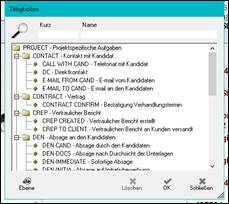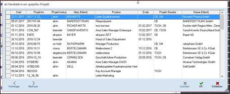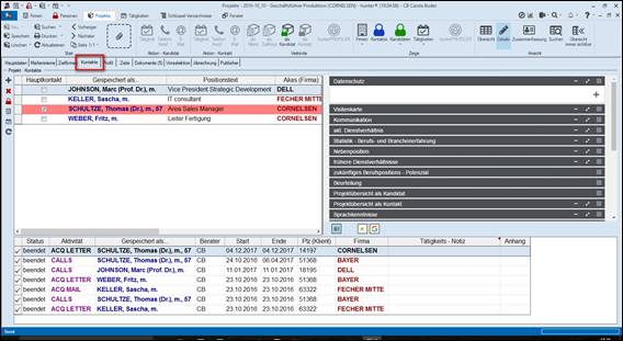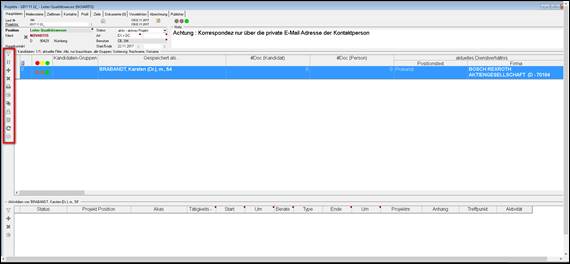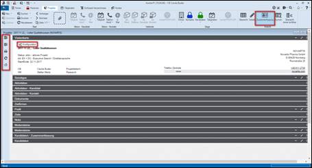 Hier wird das Projekt geführt, Projektschritte dokumentiert, Schriftverkehr mit Klienten und Kandidaten und Tätigkeiten/Aktivitäten ausgeführt.