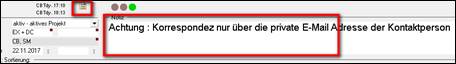 Tätigkeitsnotiz mit Klick auf bzw. Hinweis: über die Konfiguration >