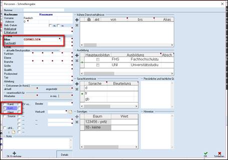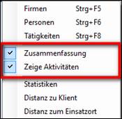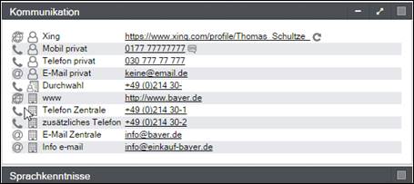 Hier finden sich alle Verknüpfungen zur Personenmaske und zur Firmenmaske wieder.