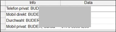 versteckte Bereiche wegen des Datenschutzes ohne inhaltliche