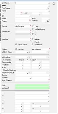 Datenfelder in den Eingabemasken und Suchmasken, die mit einem kleinen roten Quadrat in der rechten oberen Ecke gekennzeichnet sind