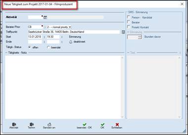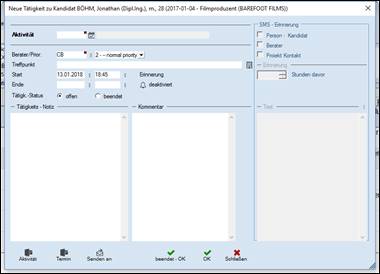 eine neue kandidaten-bezogene Tätigkeit anlegen |