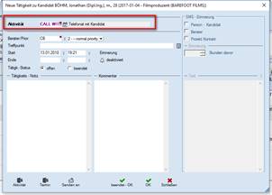 Telefonaktivität für Projekt Kontaktpersonen erstellen ...
