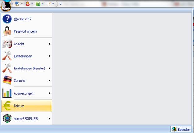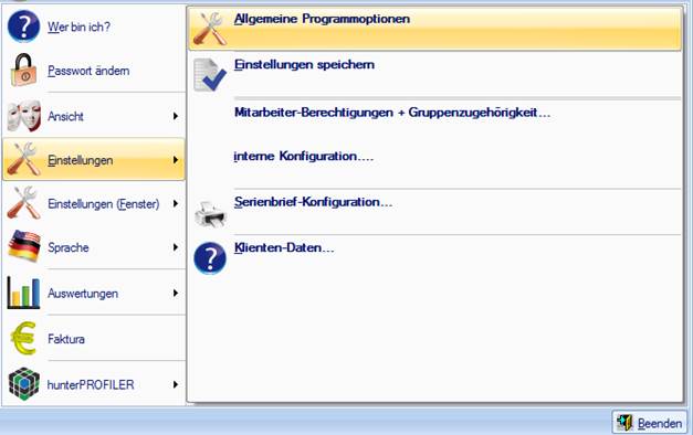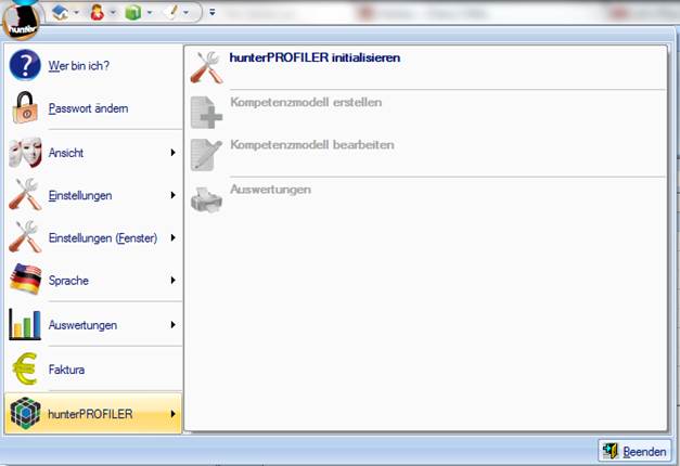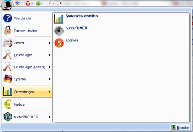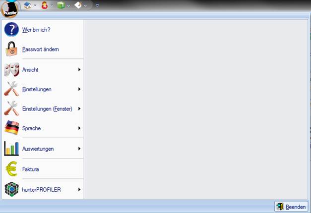 Anwendungsmenü bietet dem Benutzer die Möglichkeit den hunter individuell