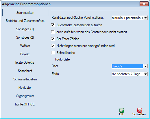 automatisch aufrufen: Öffnet standardmäßig das Suchfenster falls das entsprechenden